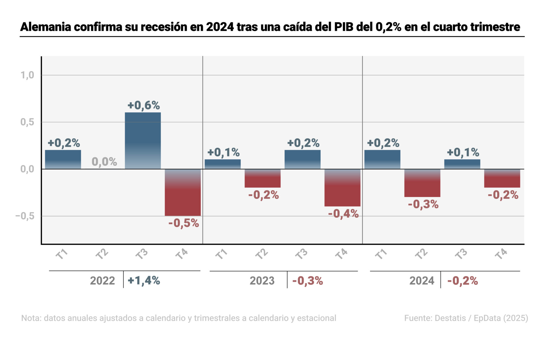 — Alemania confirma su recesión en 2024 tras una caída del PIB del 0,2% en el cuarto trimestre