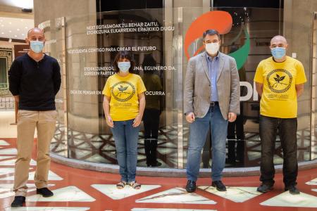 Este es el acuerdo que han alcanzado el portavoz del PNV en la Cámara alta, Aitor Esteban, el portavoz jeltzale en Karrantza, Sergio Fernández, y los representantes de la Plataforma en Defensa del Tren Santander-Bilbao, Erika García y Fernando Lobato, en una reunión que se ha celebrado este miércoles por la mañana en la sede de Sabin Etxea.