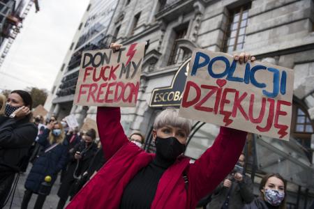 «Se ha cruzado otra frontera, aunque parece que no podemos ir más lejos», ha lamentado Katarzina, una mujer que ha acudido a la manifestación. Otros manifestantes portan pancartas en las que puede leerse «No debistéis habernos cabreado».