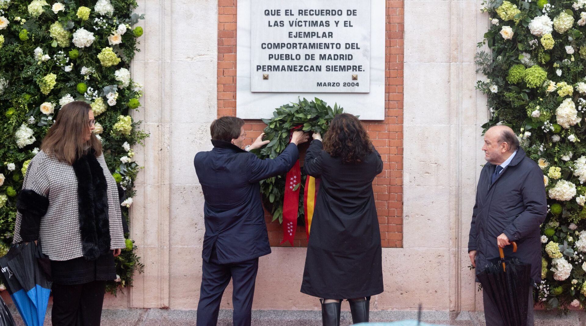 Ha sido en el primer acto del día, a las 9 horas frente a la Real Casa de Correos, donde la presidenta, Isabel Díaz Ayuso, y el alcalde de la capital, José Luis Martínez-Almeida, han depositado junto a las asociaciones de víctimas una corona laurel. Entre el público se encontraban representantes de los partidos políticos presentes en la Asamblea y el Ayuntamiento, así como el delegado del Gobierno en Madrid, Francisco Martín.