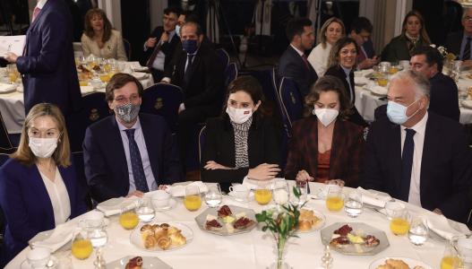 Presenta la conferencia de Gamarra, «su pareja política», una cita a la que asisten también Almeida y exministros como Báñez y Alonso