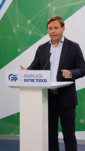El secretario general del PP-A, Antonio Repullo, ha afirmado este viernes que Andalucía no puede sola ante dos sequías, la ambiental y la del «sanchismo», por la «falta de medidas del Gobierno de España, que incumple su deber de completar obras y proyectos que son fundamentales para los andaluces, como la puesta en marcha de más 20 infraestructuras hidráulicas».