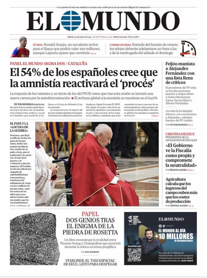 EL MUNDO: «Puigdemont se acerca a España y desata el nerviosismo en ERC y PSC»; «El eje de Irán cierra filas contra Tel Aviv: «Israel será enterrada en Gaza»»; «Ayuntamientos y CCAA critican al Gobierno por usar fondos para entrar en Telefónica»; «Dos meses sin ir a clase por la imposición del euskera».