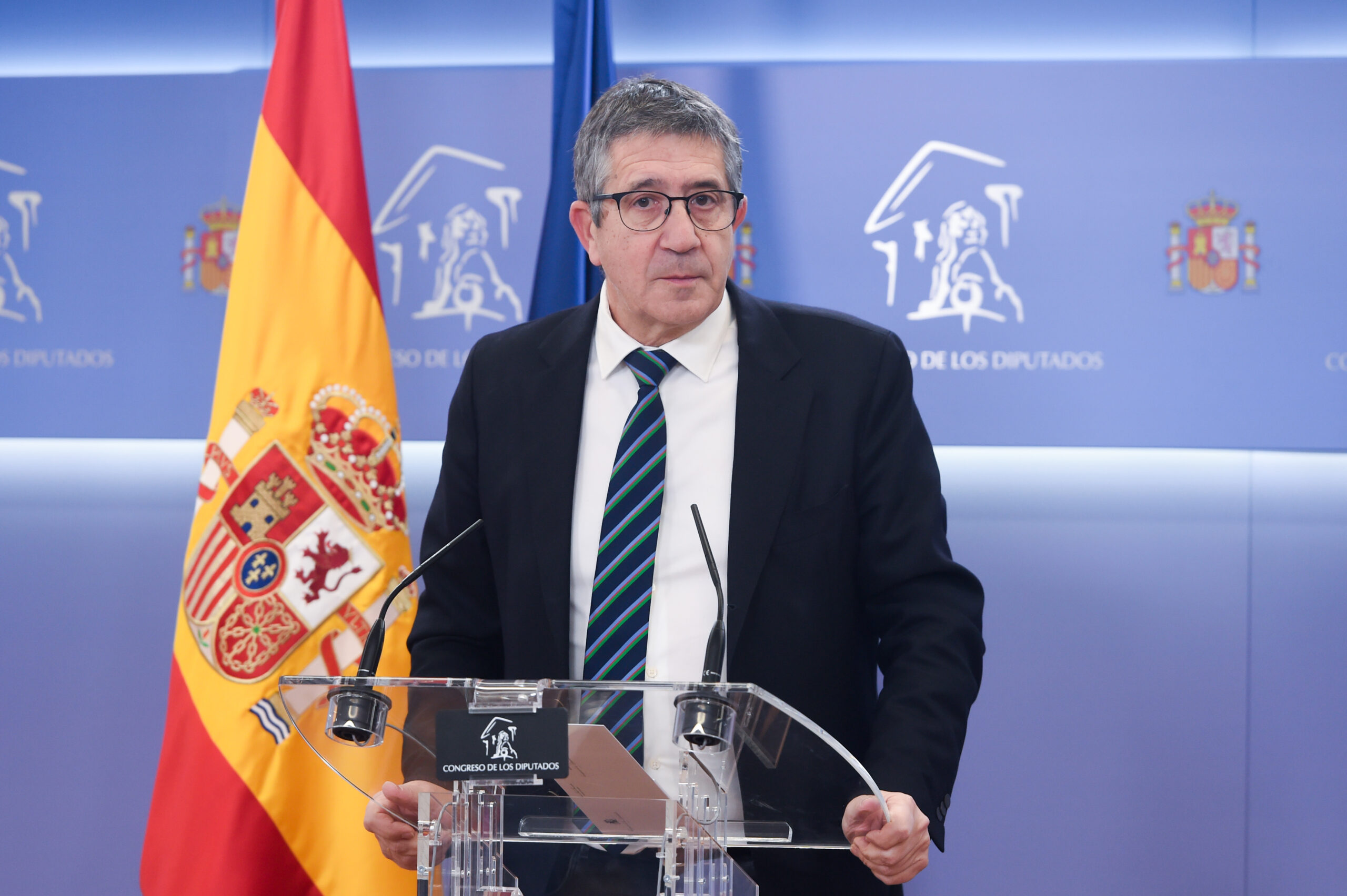 En rueda de prensa en el Congreso, Patxi López se ha referido a la iniciativa que el PP defiende este martes en el Pleno del Congreso pidiendo que los asesinatos llevados a cabo por la banda terrorista ETA sean reconocidos como crímenes de lesa humanidad y para prohibir los homenajes a los autores de esos atentados.