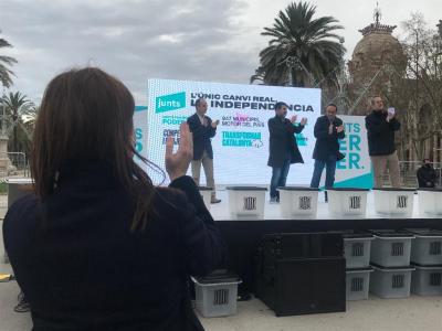 «Abandonad toda esperanza, los de un lado y los del otro, de que Junts abandone o renuncie a los aprendizajes de lo que representó el 1-O. Desconfiad de los que dicen esto», ha dicho en su intervención telemática desde Waterloo (Bruselas), en un mitin en el Arc de Triomf de Barcelona junto a la candidata, Laura Borràs, y los presos del 1-O de la formación.