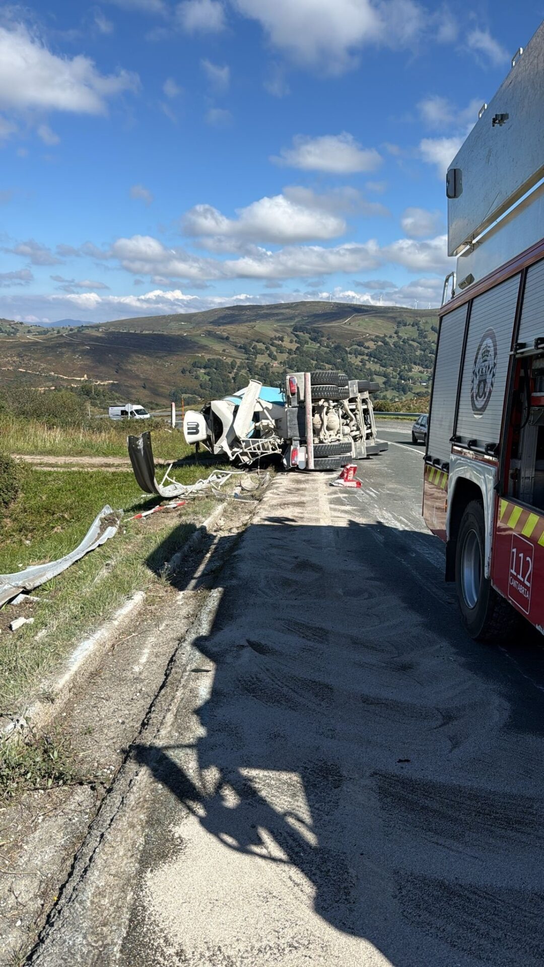 Así lo ha informado el 112 Cantabria en la red social X tras la limpieza de los restos originados por el accidente de la hormigonera, que se saldó sin heridos.