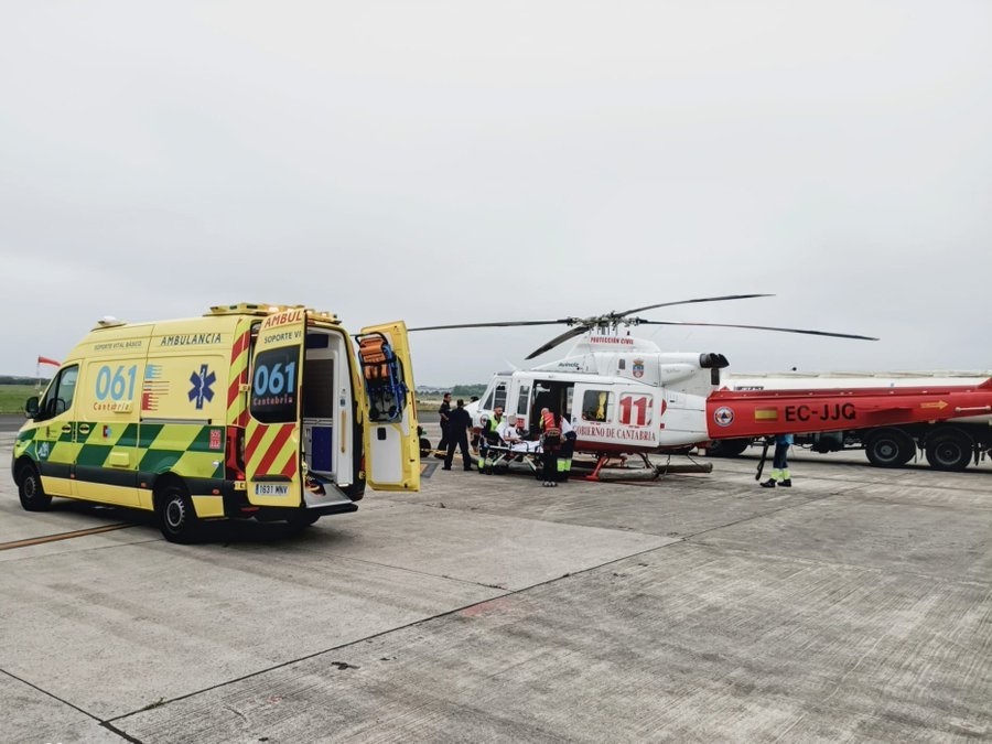Tras esa primera atención, el lesionado fue evacuado por el helicóptero hasta el aeropuerto Seve Ballesteros-Santander, según informa el 112 en su cuenta de X.