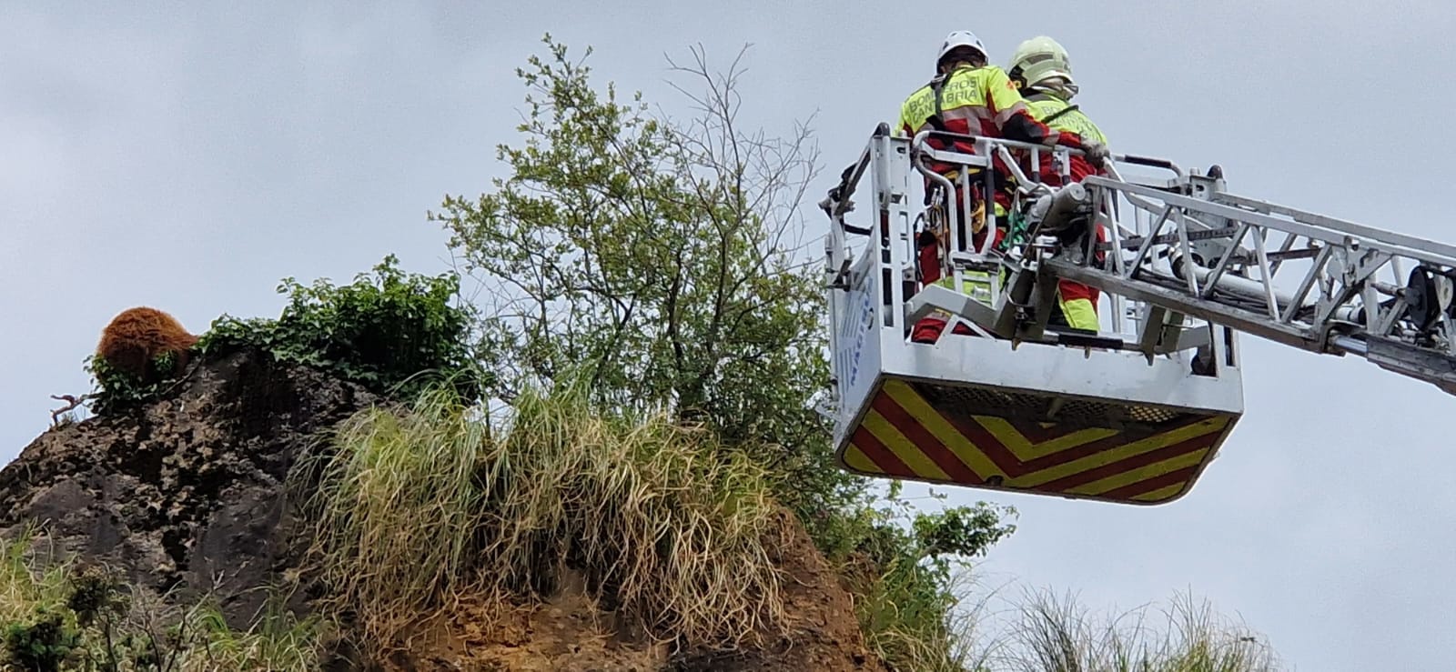 Rescatado un oso joven de un risco en Cabárceno que tuvo que ser sedado y bajado por bomberos del 112