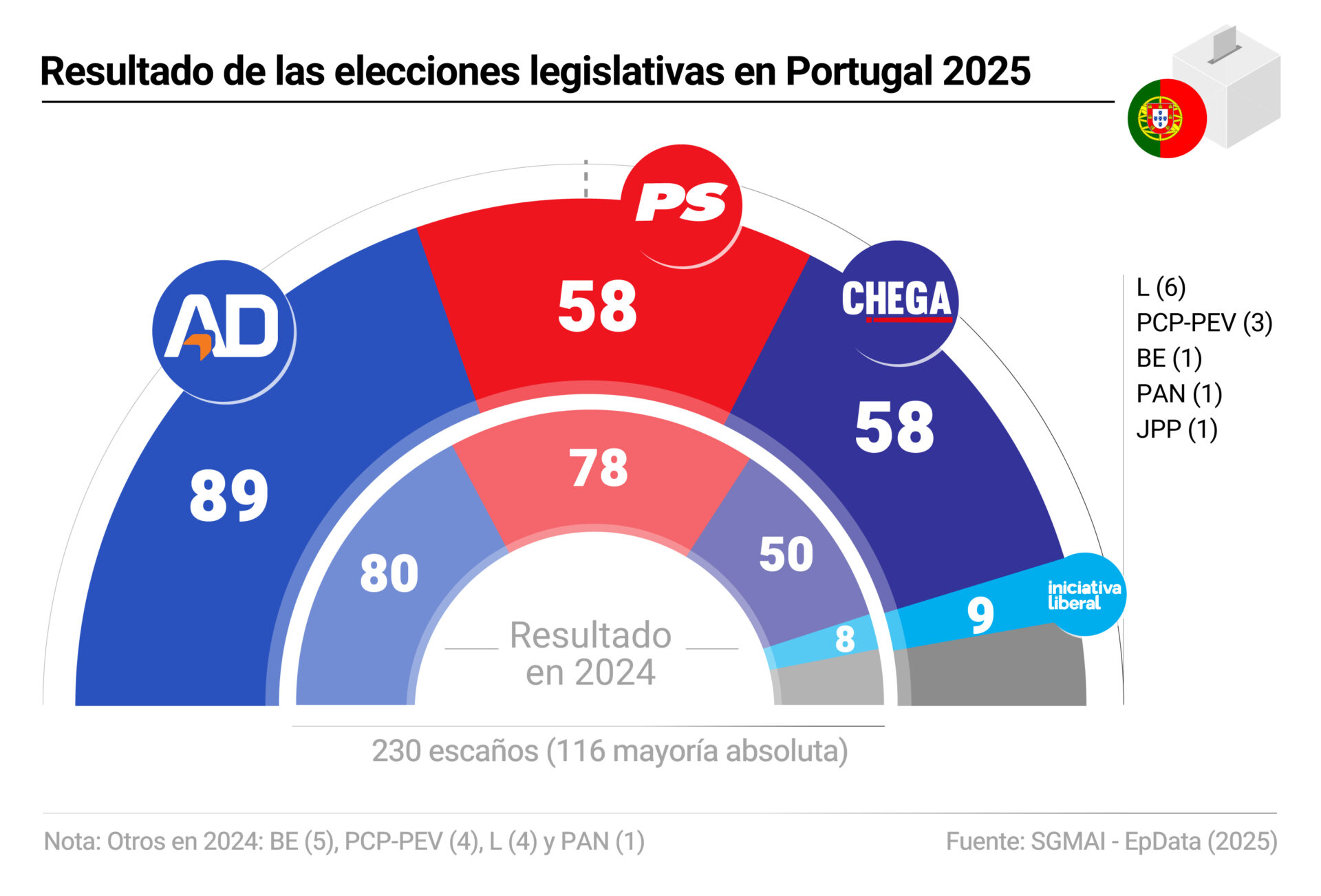 Gráfico: https://www.epdata.es/resultado-elecciones-legislativas-portugal-2025/c2a32e7f-a81c-4d8b-aeb1-8f0ae1e733a8