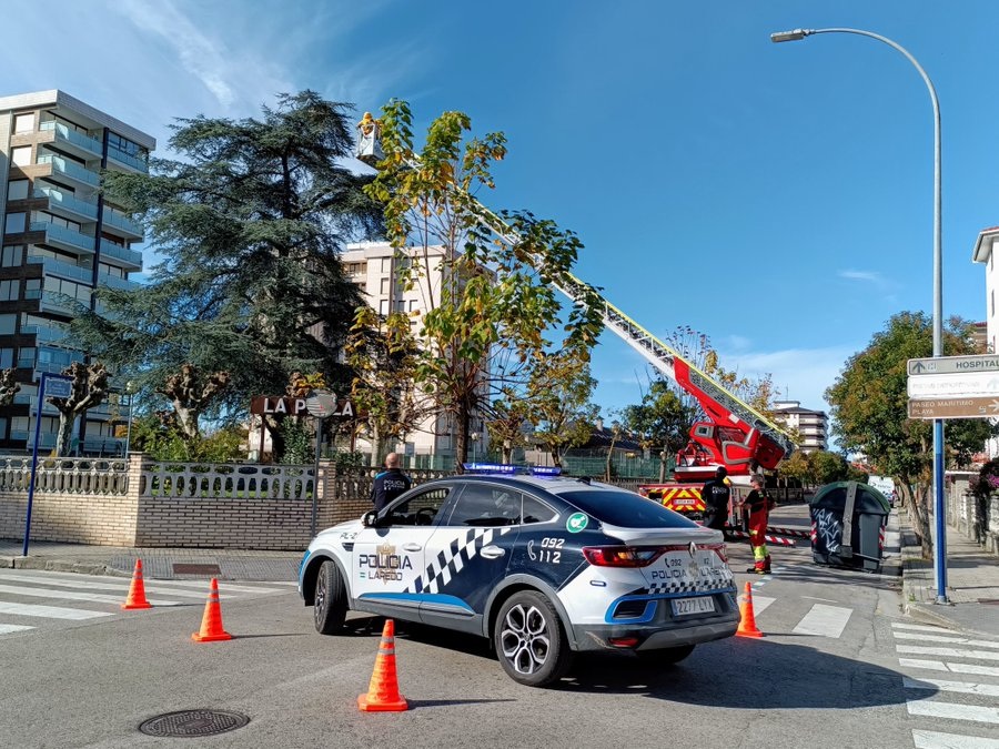 La actuación ha contado con la colaboración de la Policía Local, que ha cortado la calle para facilitar el posicionamiento del camión de bomberos.