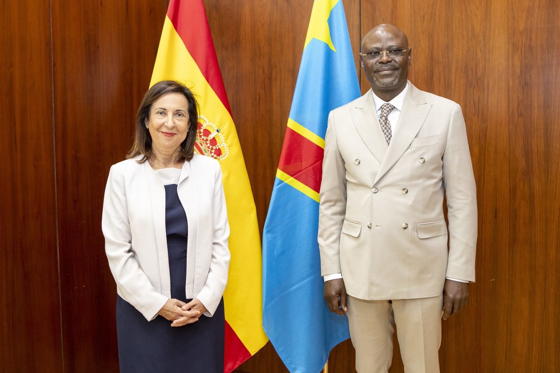 La ministra de Defensa, Margarita Robles, y el viceprimer ministro y titular de Defensa de República Democrática del Congo (RDC), Guy Kabombo, han explorado este miércoles en Madrid la posibilidad de futuras colaboraciones en materia de industria de la defensa entre los dos países.