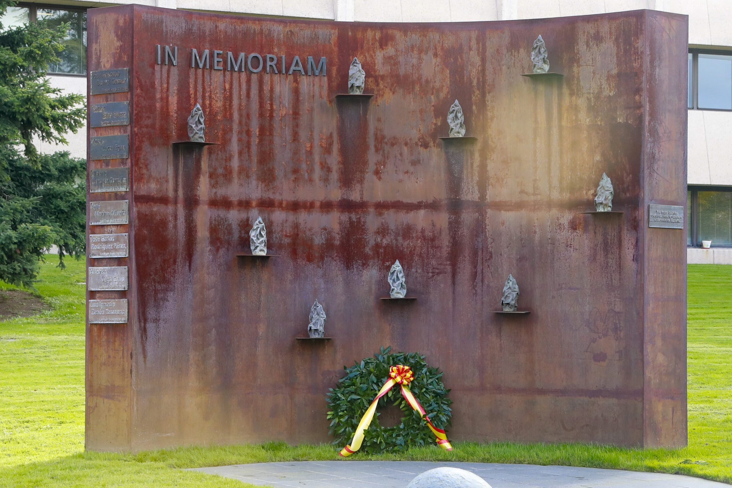 Robles y Casteleiro han transmitido a los familiares al personal del centro el deseo expresado por Felipe VI de estar allí acompañándoles. Después, se han dirigido al Monumento de los Caídos, donde la unidad de música de la Guardia Real ha interpretado la oración A los que dieron su vida por España y La muerte no es el final , tras lo que han depositado una ofrenda de corona de laurel. Para concluir el acto, se ha interpretado el toque de oración y el himno nacional.