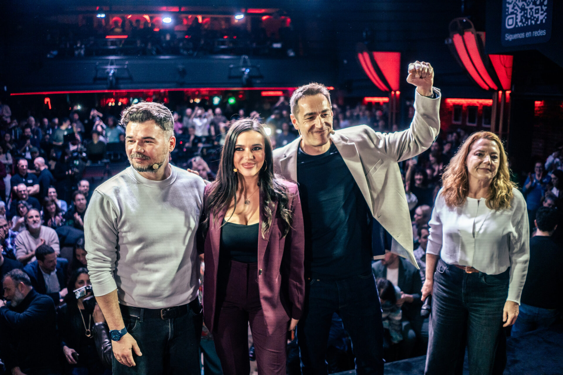 Acude al coloquio una nutrida presencia de cargos de los partidos de Sumar, ERC, Compromís, CHA e incluso un diputado del PSOE