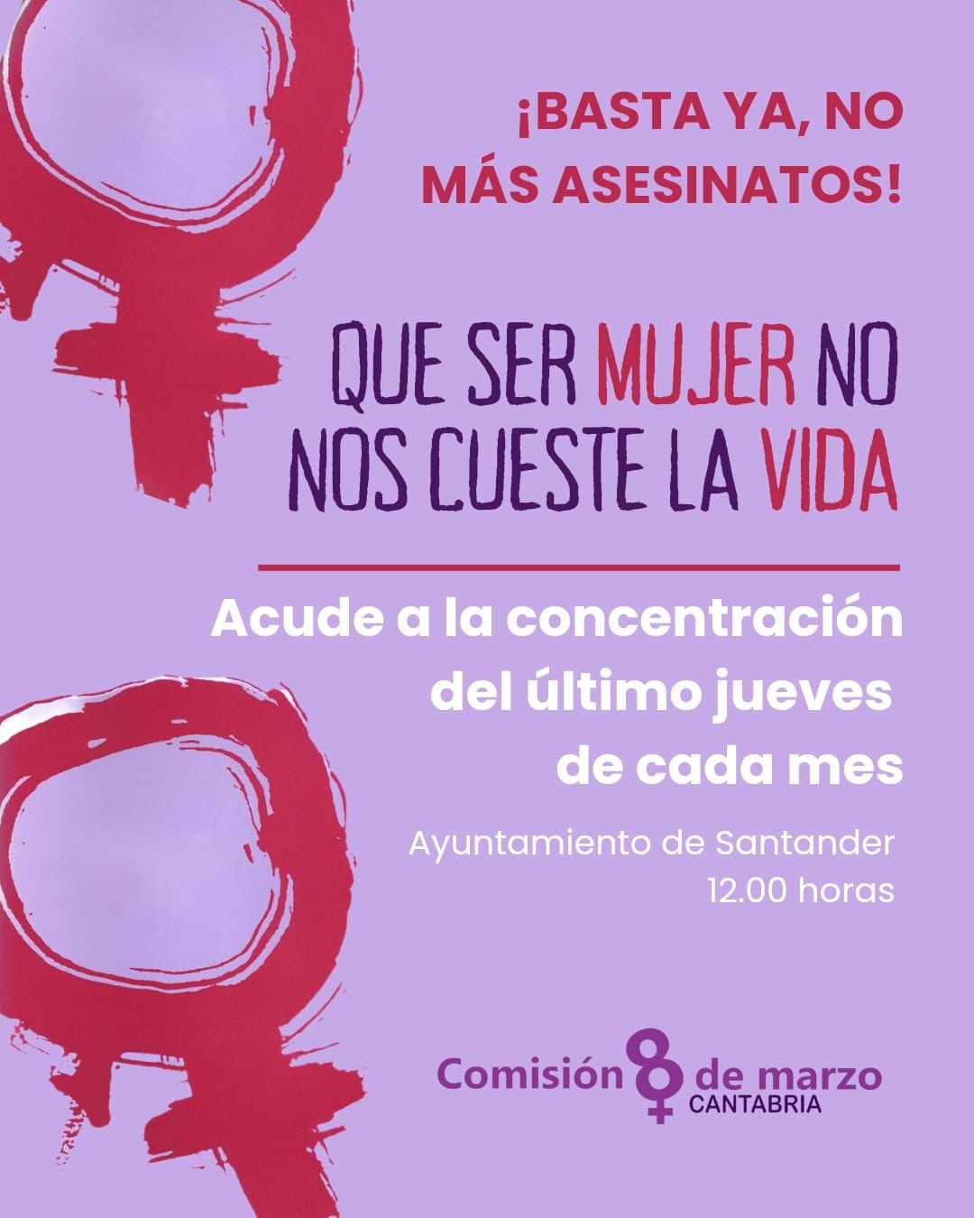 La Comisión 8 de Marzo anima a secundar ésta y todas las concentraciones que se convoquen a partir de ahora para expresar junto con la Corporación municipal «la más enérgica de las condenas» por estos crímenes.