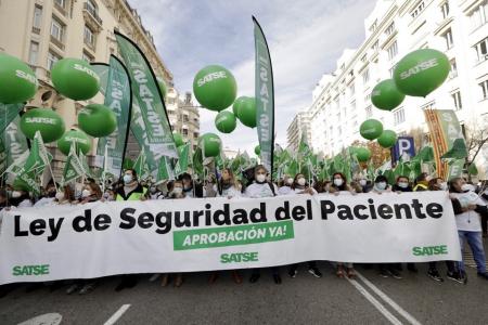SATSE reúne casi a 1.000 sanitarios para protestar ante el Congreso: «La Sanidad está rota. No queremos palabras huecas»