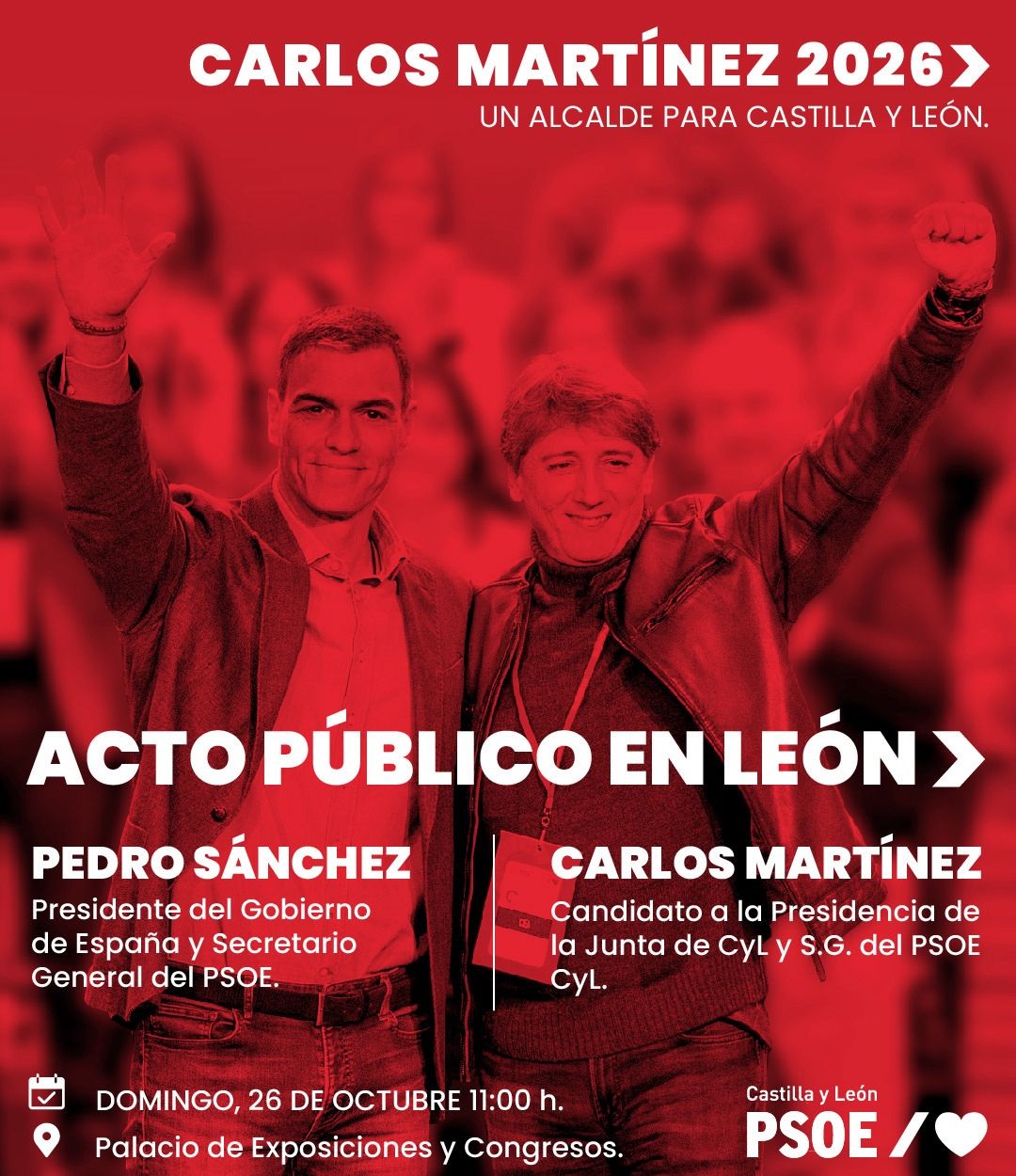 El encuentro culminará mañana a las 11.00 horas con un gran acto abierto a la ciudadanía en el Palacio de Exposiciones y Congresos de León que contará con la participación de Pedro Sánchez y del secretario general del PSOE de Castilla y León y candidato a la Presidencia de la Junta, Carlos Martínez.