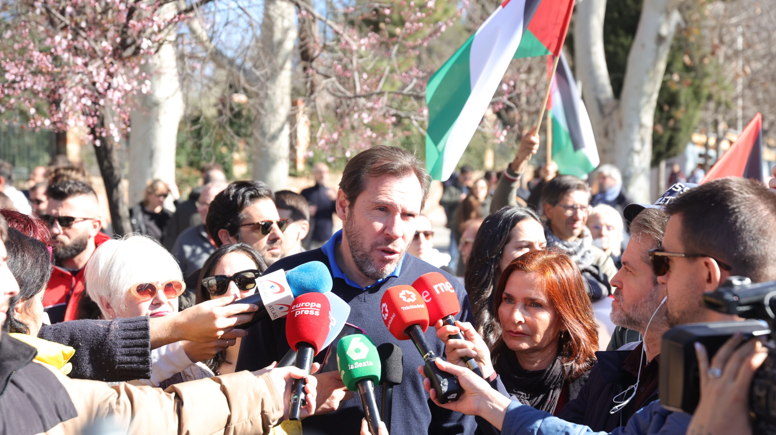 Puente es el primer miembro socialista del Gobierno que acude a una marcha en solidaridad con Palestina. Aunque su presencia no estaba anunciada en la agenda del Ejecutivo, el titular de Transportes se ha sumado a una protesta a la que también han acudido la vicepresidenta líder de Sumar, Yolanda Díaz, y los ministros de Sanidad, Mónica García; Cultura, Ernest Urtasun; Derechos Sociales, Pablo Bustinduy; y Juventud e Infancia, Sira Rego.