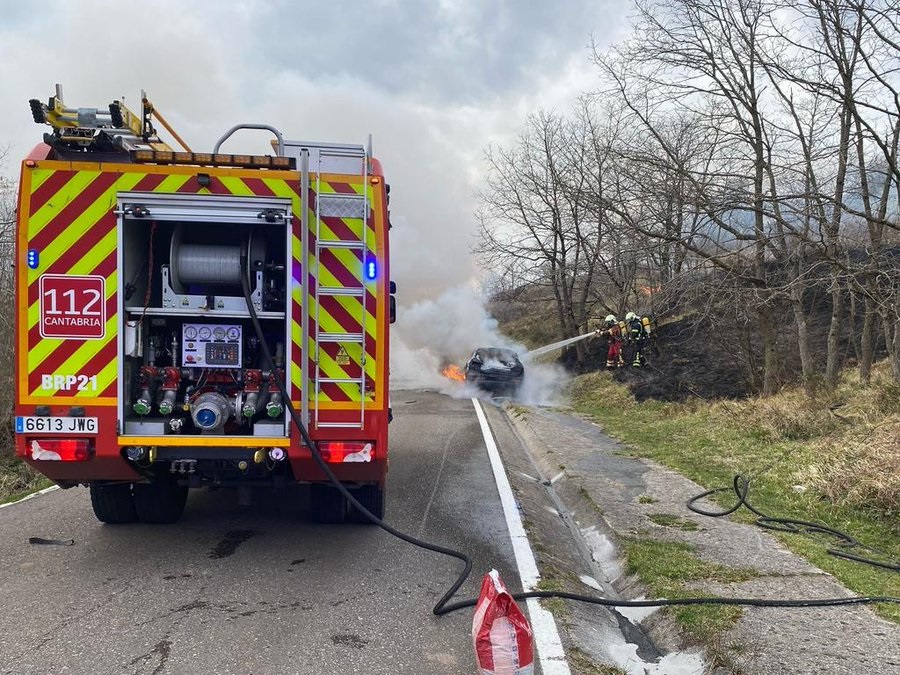 Un turismo se ha incendiado este jueves por la tarde en la carretera autonómica CA-282 en Lamasón, sin que se haya producido ningún herido, si bien el fuego se ha propagado a la vegetación colindante.