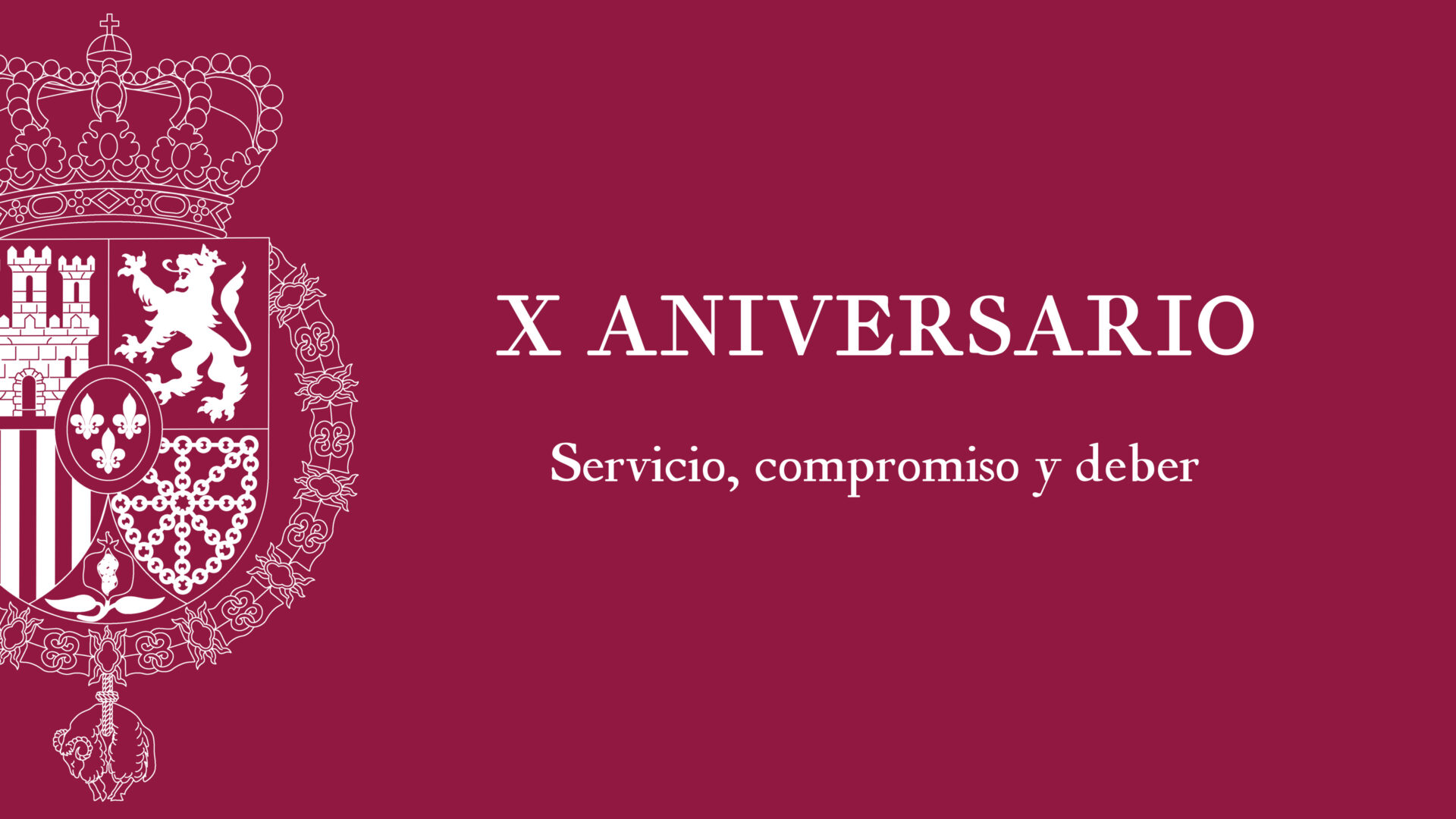 «Servicio, compromiso y deber» ha sido el emblema elegido por Felipe VI con motivo del décimo aniversario de su proclamación como Rey el 19 de junio de 2014, según ha informado Zarzuela.