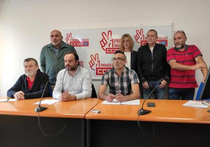Los secretarios generales de CCOO Industria y UGT FICA, Damián Manzano y Jenaro Martínez, respectivamente, han ofrecido una rueda de prensa acompañados de los responsables de acción sindical de ambas organizaciones y miembros de los comités de empresa de Duro Felguera para explicar las acciones que llevarán a cabo en contra de la decisión de la empresa.