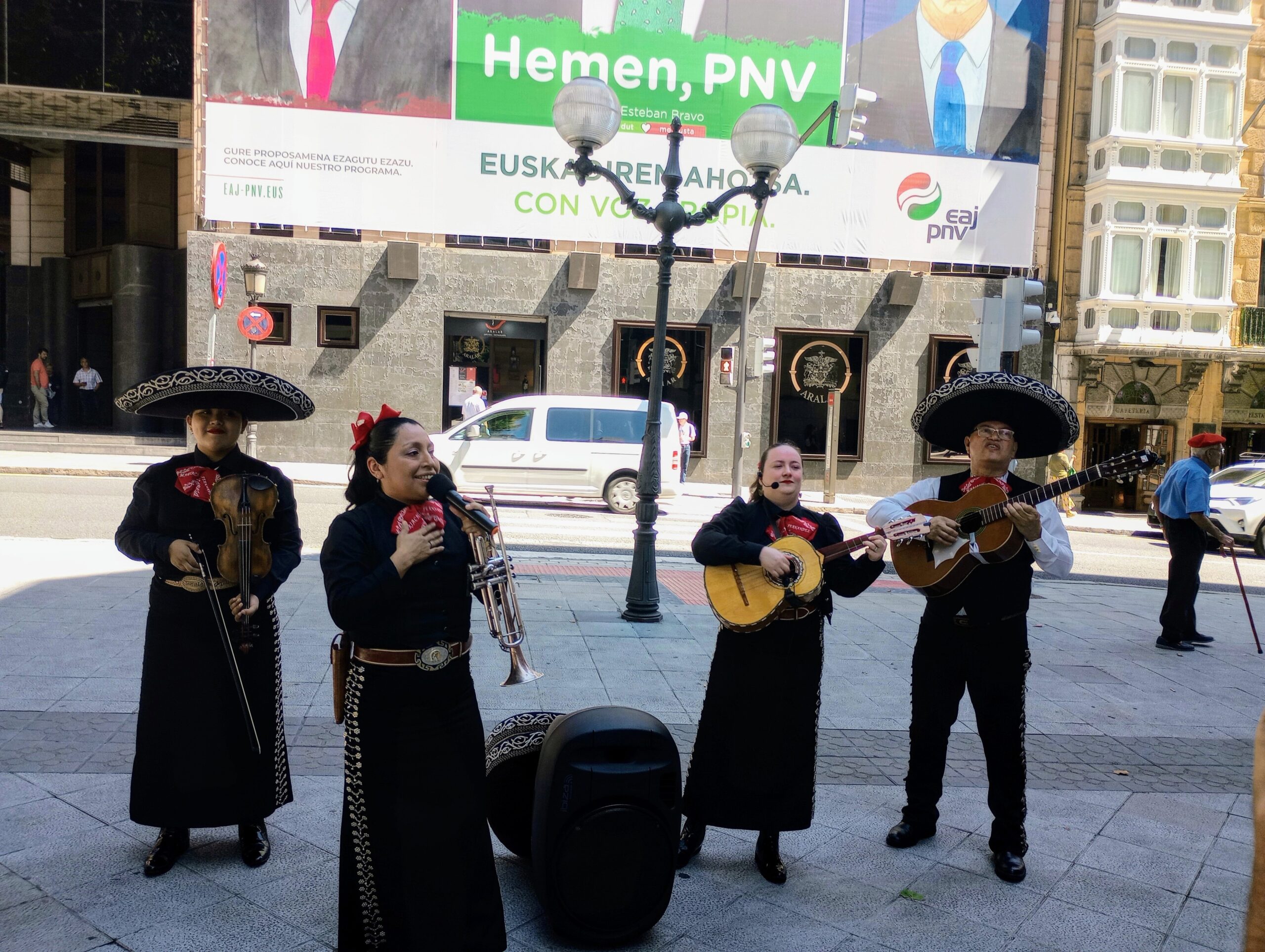 En un comunicado, las centrales sindicales han afirmado que este grupo amenizará, «siempre de forma respetuosa», a partir de las 12.00 horas, «a los transeúntes y turistas que abarroten una de las arterias más concurridas de la ciudad», pero «sin olvidar a los dirigentes políticos del PSE, responsables de la dirección del actual Gobierno Vasco y miembros del Consejo de Gobierno con figuras tan relevantes como la de una Vicelehendakari», Idoia Mendia.