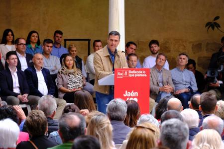«Es verdad que España crece más que la media europea, hoy creamos empleo como no hemos creado en toda la serie histórica de la Seguridad Social y eso nada tiene que ver ni con los curanderos, ni tampoco con las telepredicadoras, tiene que ver con que el PSOE gestiona mejor la economía que la derecha española», ha dicho Sánchez en el patio del Hospital de Santiago de Úbeda, rodeado por cerca de un millar de personas.
