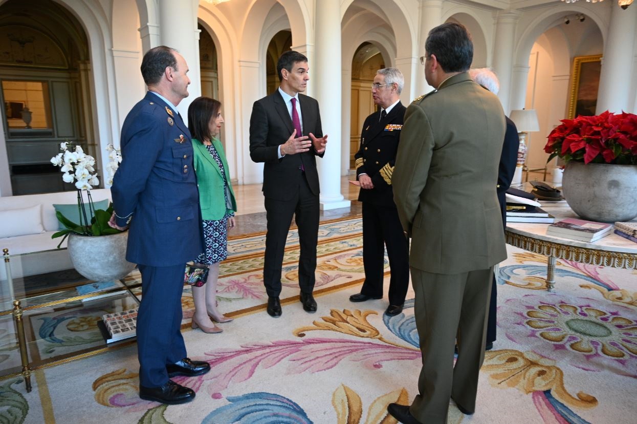El presidente del Gobierno, Pedro Sánchez, y la ministra de Defensa, Margarita Robles, se han reunido este viernes con el Jefe de Estado Mayor de la Defensa (JEMAD), el almirante Teodoro López Calderón, y los altos mandos del Ejército, coincidiendo con el inicio de las fiestas navideñas.