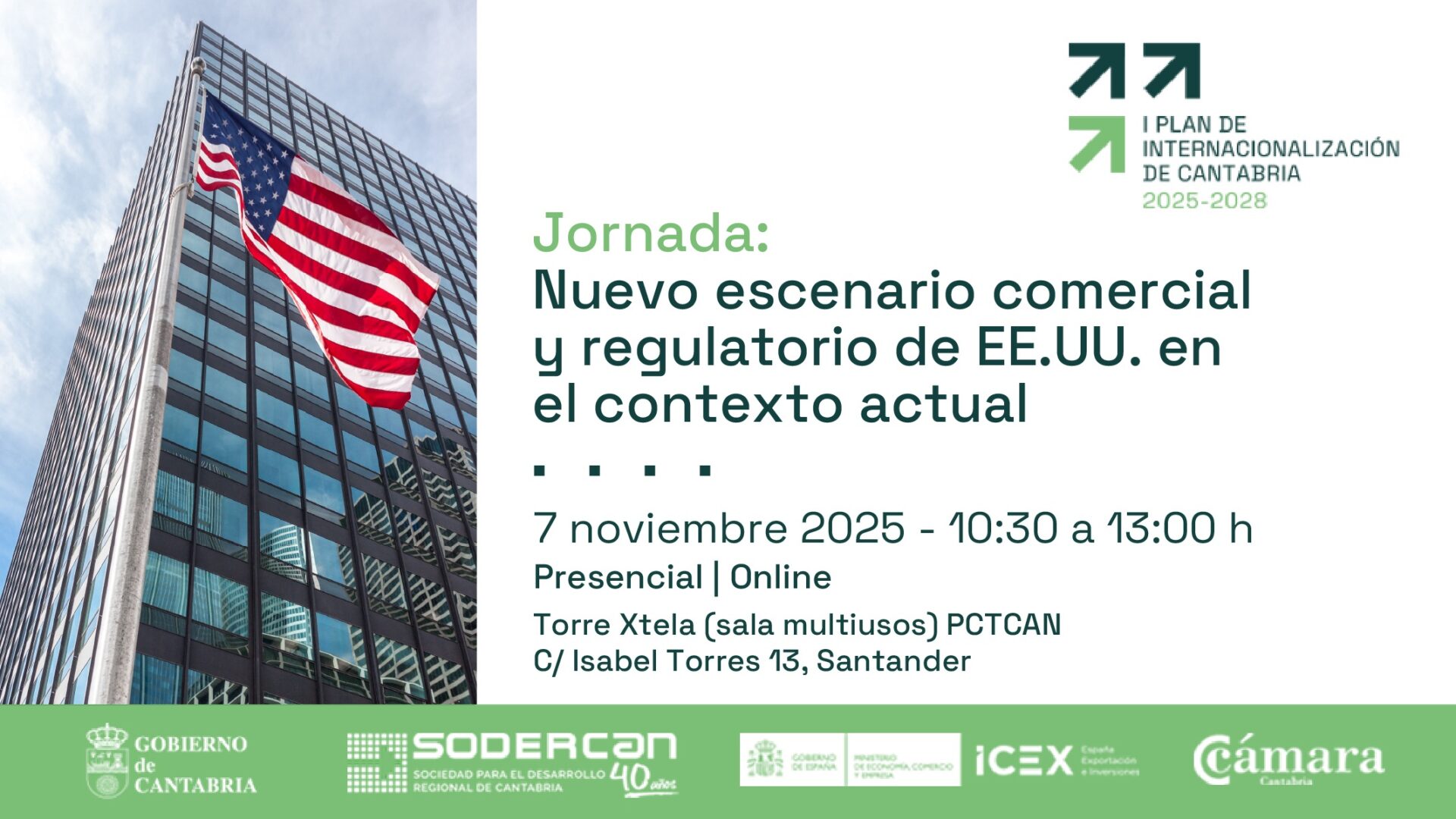 La Sociedad para el Desarrollo de Cantabria, SODERCAN (http://www.sodercan.com/), dependiente de la Consejería de Industria, Empleo, Innovación y Comercio, ha organizado para este viernes, 7 de noviembre, una jornada para analizar con las empresas exportadoras cántabras el nuevo escenario comercial y regulatorio de Estados Unidos.