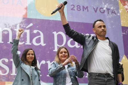 Roberto Sotomayor ha insistido esta mañana en la plaza de Peñuelas, ante varios cientos de personas, entre ellas la candidata regional Alejandra Jacinto y la ministra de Derechos Sociales Ione Belarra, en que «no le temblarán las piernas» para hacerlo y también para remunicipalizar todos los servicios públicos privatizados y «devolvérselos al pueblo».