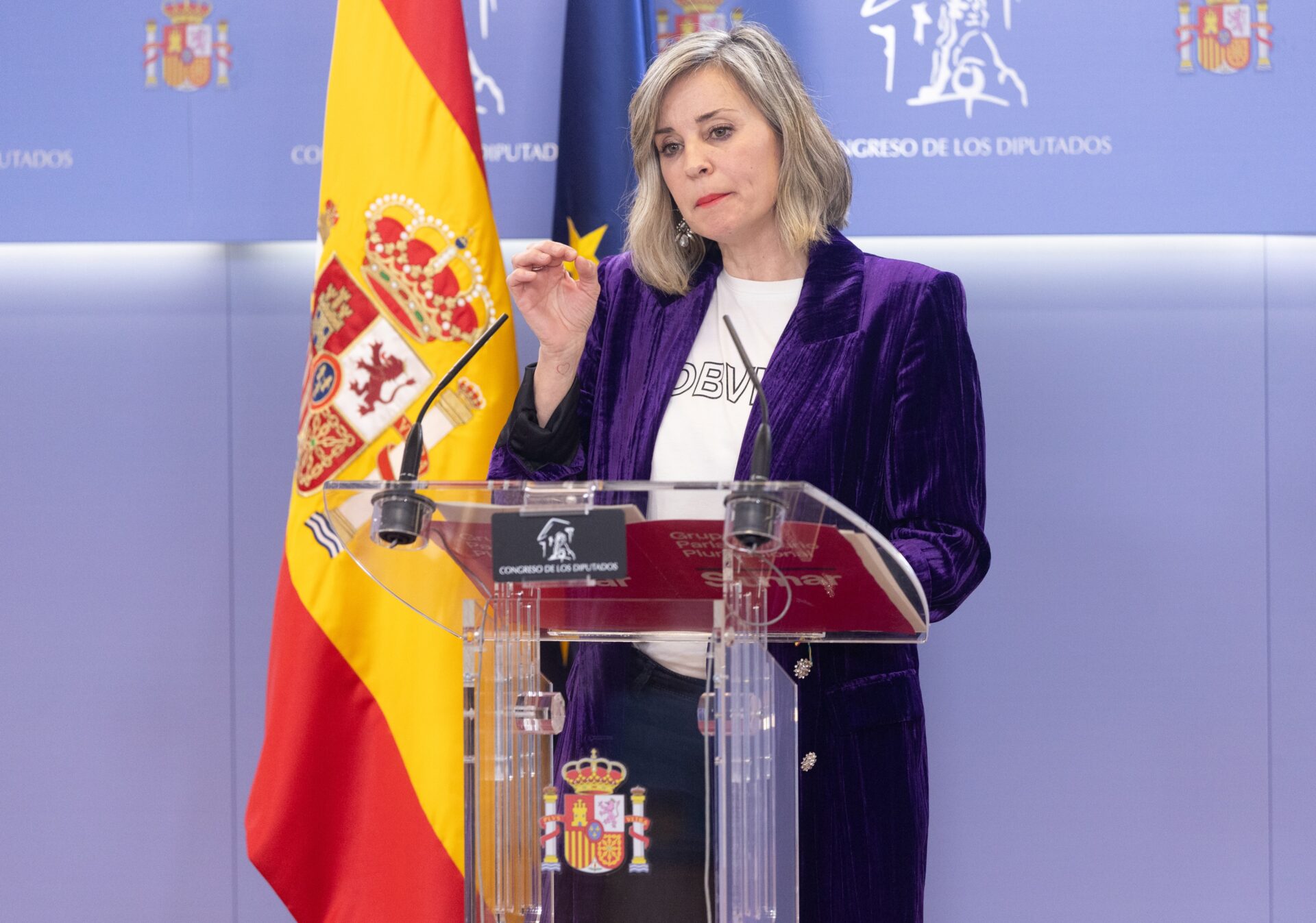 La portavoz de Sumar en el Congreso, Verónica Martínez Barbero, ha asegurado que su formación no cesará hasta que la exención fiscal del salario mínimo interprofesional (SMI) llegue hasta el Boletín Oficial del Estado (BOE) y ha respondido al PSOE que su «pedagogía fiscal» es que las cajeras paguen más impuestos proporcionalmente que los «especuladores» en vivienda.