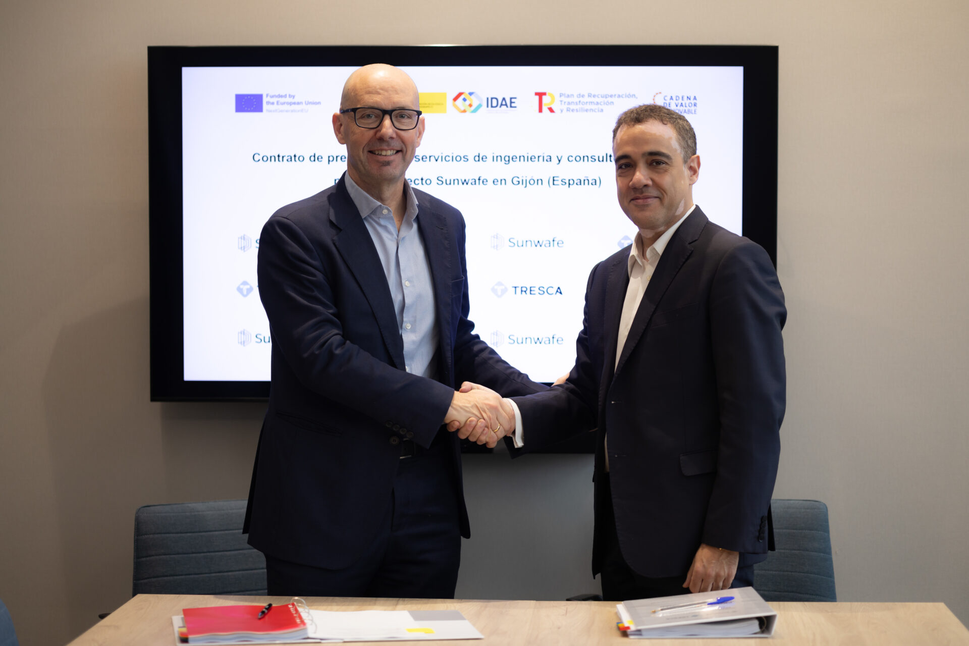 La firma del acuerdo ha tenido lugar en las oficinas de InnoEnergy en Madrid y al acto han acudido el director general de Tresca Ingeniería, Francisco Carro, y Mikel Lasa, director general de InnoEnergy Iberia.