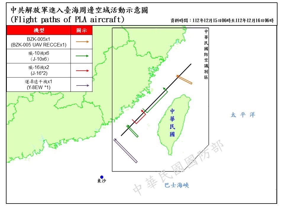 El Ministerio de Defensa taiwanés ha indicado que a las 6.00 horas (hora local) se ha registrado la presencia de 27 aviones alrededor de Taiwán, de los cuales diez han cruzado la línea media del estrecho de Taiwán y han entrado en la zona de identificación de defensa aérea de la isla.