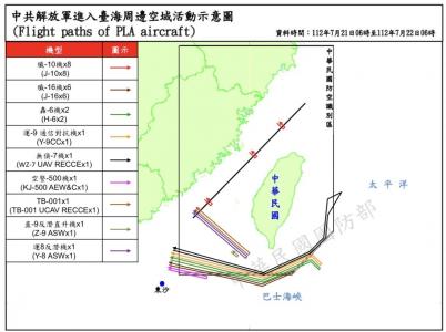 Además, 22 de los aviones han traspasado el espacio aéreo por el suroeste, por lo que las Fuerzas Armadas taiwanesas han monitorizado la situación y respondido con el despliegue de aeronaves, embarcaciones y sistemas de misiles terrestres, según ha publicado el Ministerio de Defensa en su cuenta de Twitter.