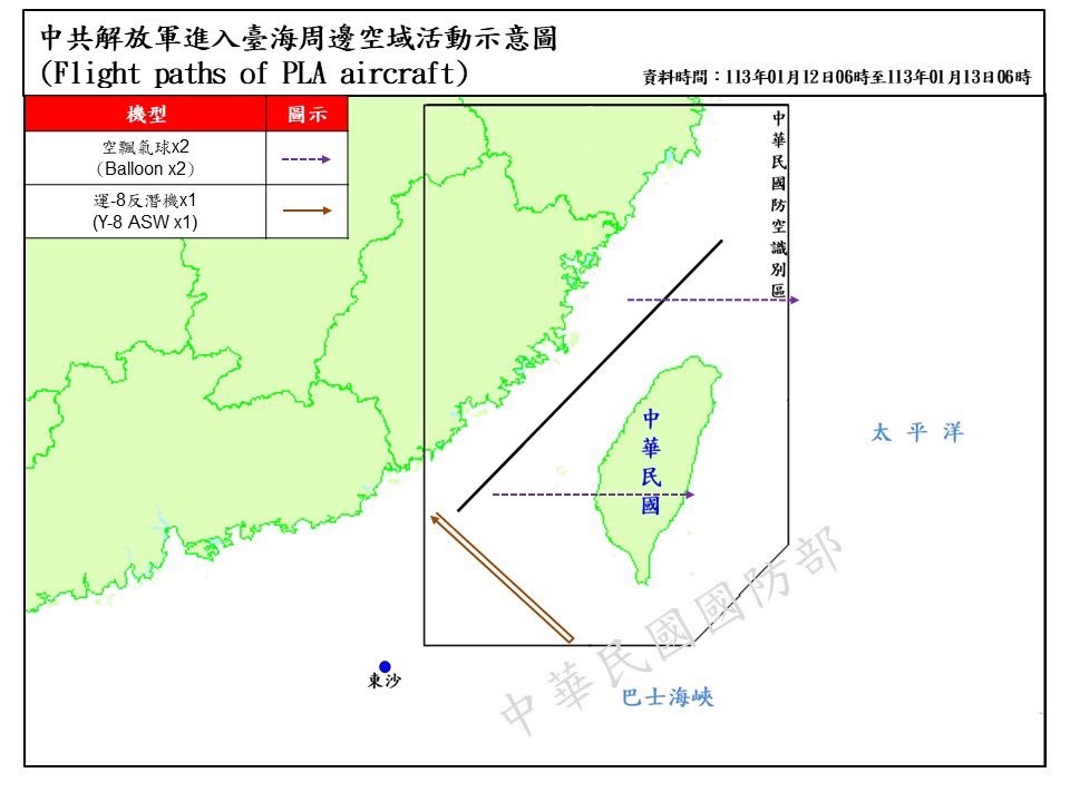 El Ministerio de Defensa de Tawián ha informado este sábado de la presencia de ocho aparatos militares de la aviación china y de seis buques chinos en la zona del estrecho de Taiwán coincidiendo con las elecciones presidenciales y legislativas taiwanesas.