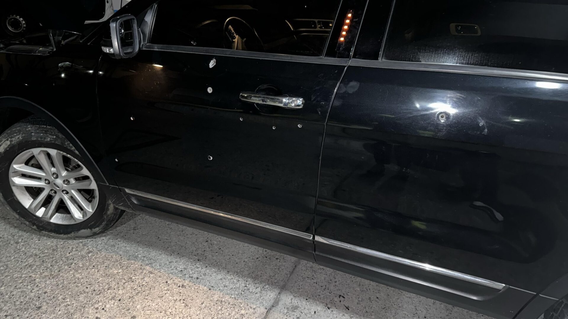 «Acaban de balear mi vehículo (aproximadamente 2h00) en el que viajaba mi hijo Diego, su novia y amigos. El chofer que da seguridad está herido y fue trasladado a un Hospital», ha indicado. «Fueron nueve o diez tiros. En la puerta y muy cerca de la ventana», ha explicado en un vídeo anexo.