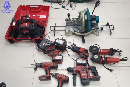 Los agentes, conocedores de que se habían producido varios robos en obras de construcción, se pusieron en contacto con la Policía Judicial, que investiga este tipo de delitos, varios de cuyos miembros se personaron en el lugar constatando que las herramientas figuraban como robadas en una obra hacía pocos días y eran propiedad de dos empresas.