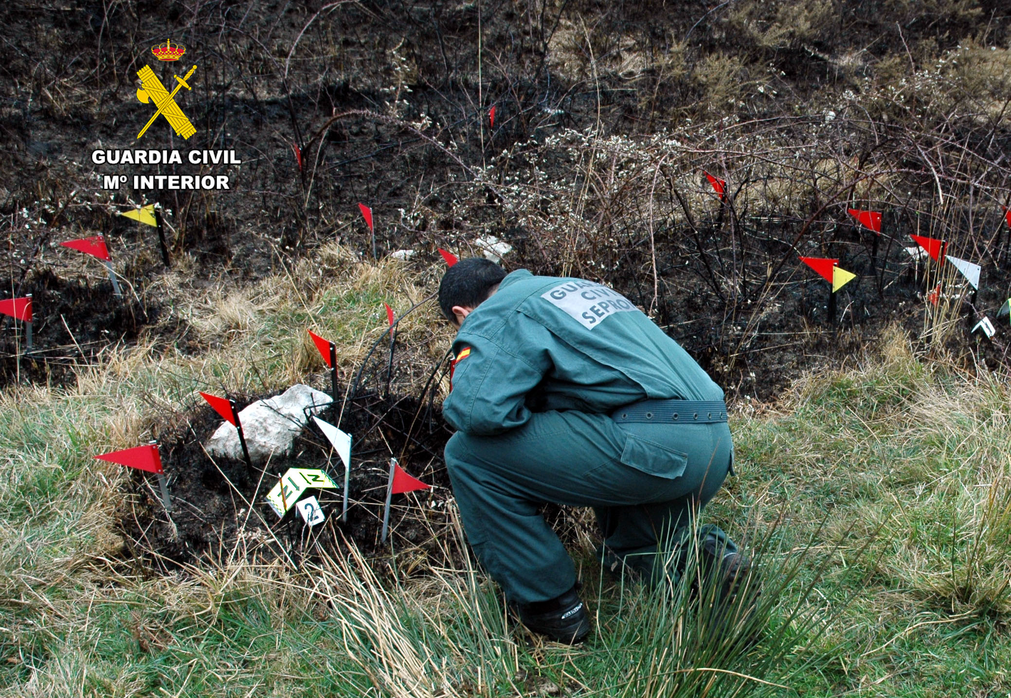 El SEPRONA determinó la existencia de varios focos de inicio del incendio y dedujo que se habían utilizado dispositivos de retardo. Estos focos coincidían con el lugar donde se detuvo el vehículo.