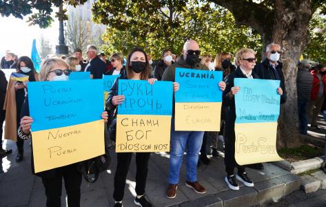«Han fracasado los intentos diplomáticos, las sanciones no son suficientes como para que se acabe esta absurda guerra», ha advertido en su discurso, seguido por decenas de personas.
