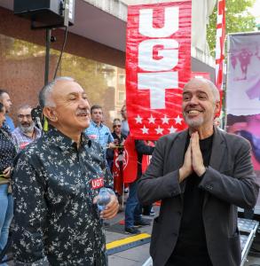 Desde UGT, Pepe Álvarez ha recordado que la concentración de este viernes irá seguida de asambleas y reuniones en las empresas a lo largo del mes para «acompañar a trabajadores que están negociando», con la finalización el 3 de noviembre con «una gran manifestación en Madrid».