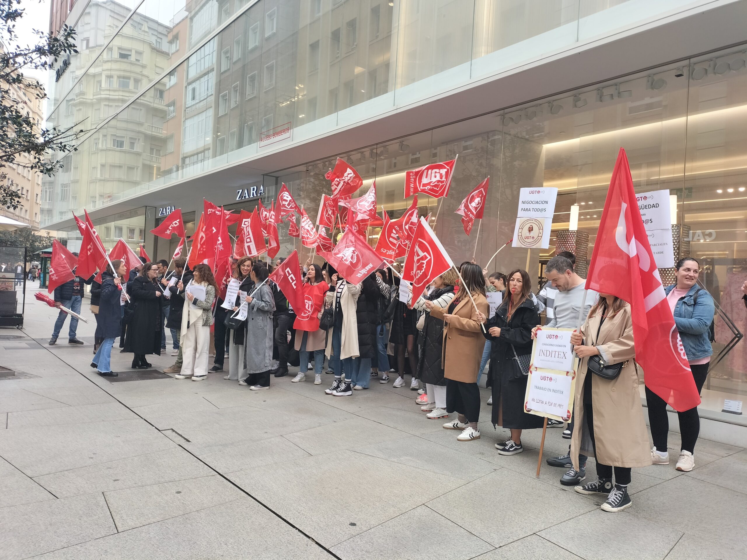 En una concentración convocada por la Federación de Servicios, Movilidad y Conusmo (FeSMC) de UGT frente al establecimiento de Zara en la ciudad, que ha reunido a cerca de un centenar de trabajadores, y que se ha celebrado en otras localidades españolas, el responsable regional de Comercio del sindicato, Eliseo Alonso, ha explicado que se ha producido «un acercamiento en esta cuestión de negociación pero todavía no es suficiente».