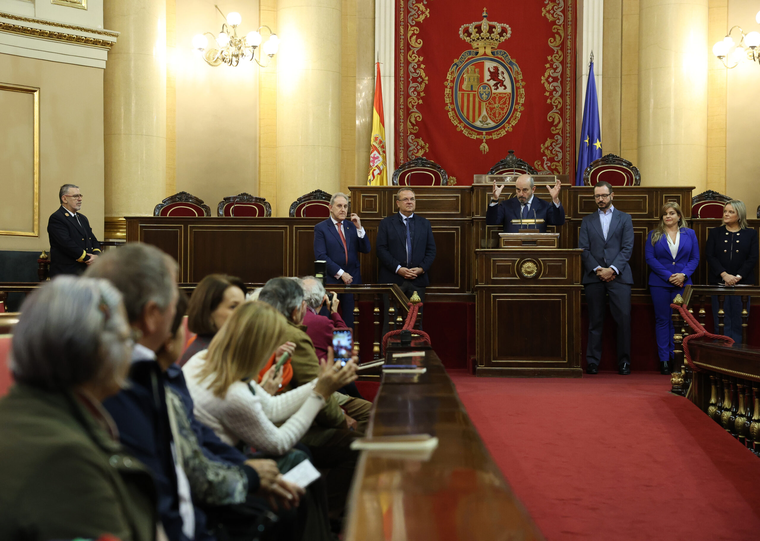 Rollán, acompañado de otros miembros de la Mesa y representantes de los Grupos Parlamentarios como los populares Javier Maroto y Eva Ortiz o el socialista Alfonso Gil entre otros, ha inaugurado estas jornadas de puertas abiertas, que coinciden con el 45º aniversario de la Constitución, bajo un ambiente fresco. Desde el Senado «tenemos la misión de trabajar por un mejor país, y por el bienestar de nuestras ciudades, que es lo que debería de siempre nuestra acción política», ha explicado a los asistentes y les ha agradecido su presencia.