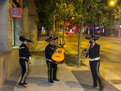 Un grupo de mariachis llega a la sede de Ciudadanos tras su desplome y quedarse fuera de la Asamblea de Madrid