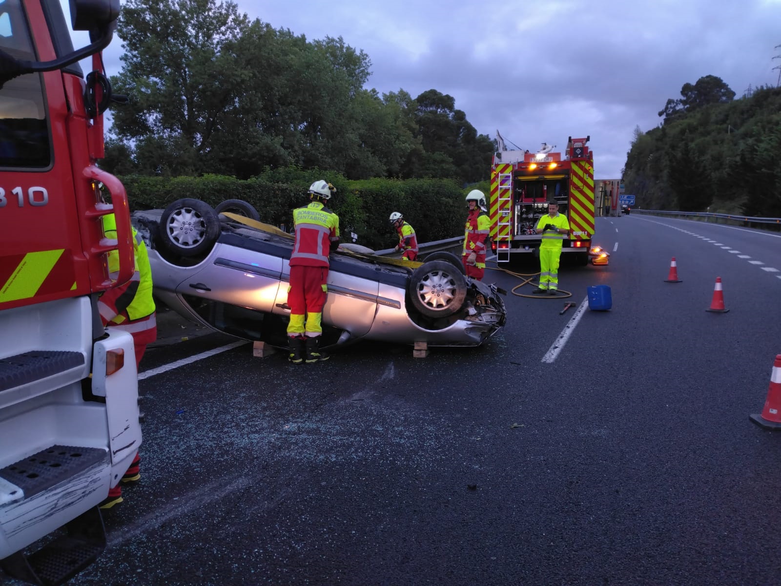 El vuelco de un vehículo en la A-8 a la altura de Laredo ha dejado un herido leve, que ha tenido que ser extraído del coche por los bomberos del 112 y personal del 061.