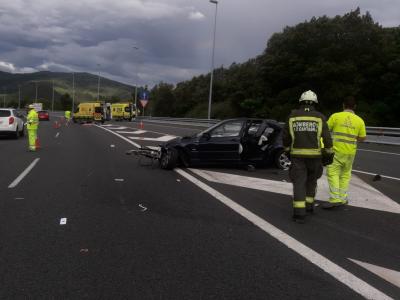 Un herido muy grave en un accidente en la A-8, a la salida de Liendo, con dos vehículos implicados