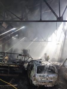 A consecuencia de las llamas, una de las naves de la antigua trefilería ha quedado totalmente calcinada. Además, el fuego ha afectado a vehículos y maquinaria.