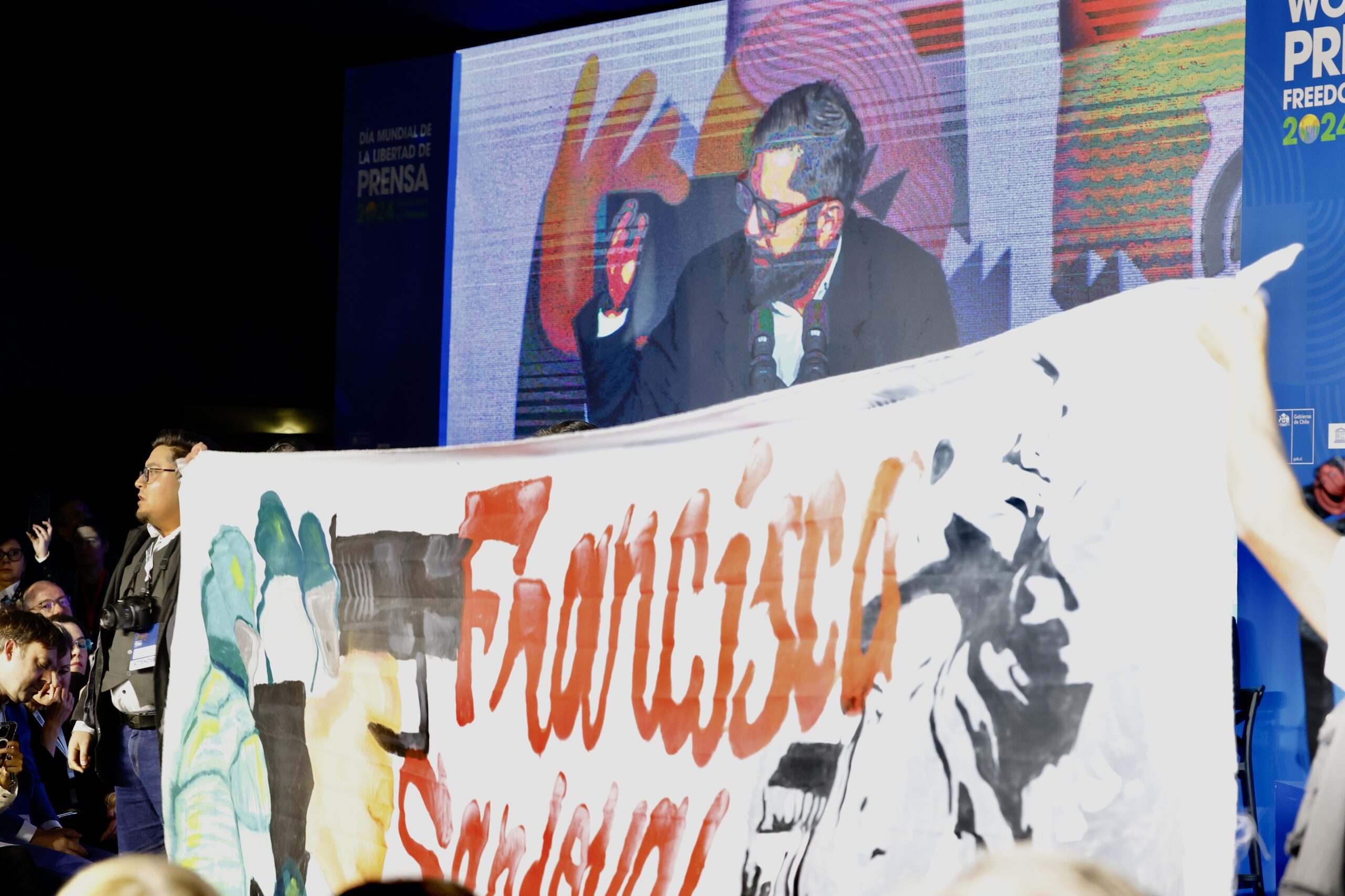 El director del medio Señal 3 La Victoria, Benjamín Lillo, ha interrumpido este viernes el discurso del presidente de Chile, Gabriel Boric, sobre libertad de prensa para protestar por la inacción del Gobierno en la investigación sobre la muerte a tiros de la periodista Francisca Sandoval en mayo de 2022.