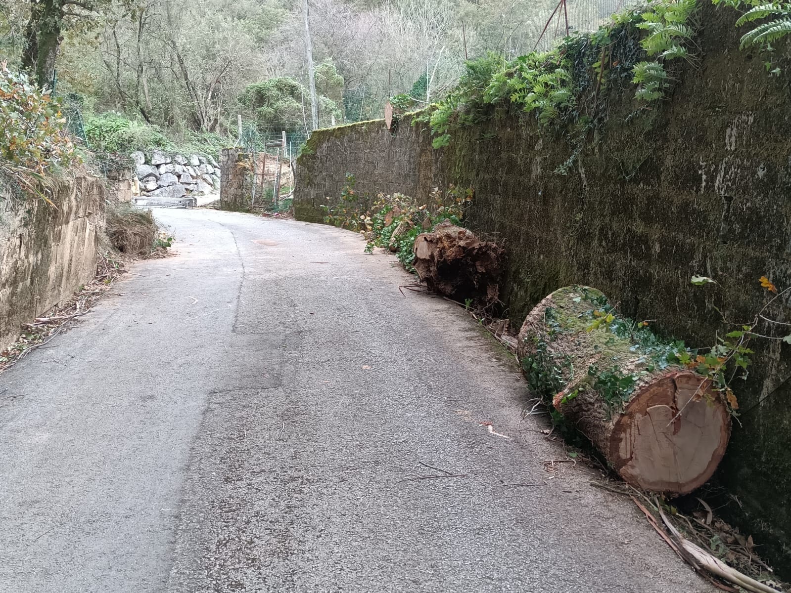 Según información del Centro de Atención a Emergencias 112, en su caída, el árbol ha arrastrado cables de la luz y ha tirado al suelo el poste de hormigón que los sostenía.