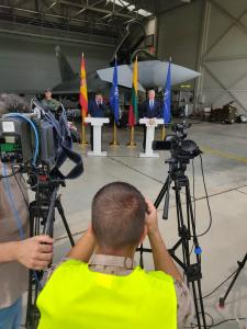 Los dos mandatarios estaban dirigiéndose a los medios precisamente delante de uno de los dos cazas Eurofighters del Ala 14 que han salido minutos después a identificar el avión o aviones rusos detectados, para cumplir con el que es su cometido habitual en esta misión –este tipo de avisos se producen de forma frecuente, según fuentes del destacamento–.
