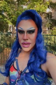 Con abundante maquillaje con colores azules, peluca azul y una vestimenta especial para la ocasión, la drag queen Onyx ha dado con su presencia la nota de color durante estas primeras horas de la cita electoral.