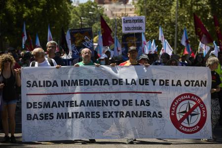 Una multitudinaria manifestación carga contra la OTAN en vísperas de la cumbre de Madrid, con apoyo de IU y sin Podemos
